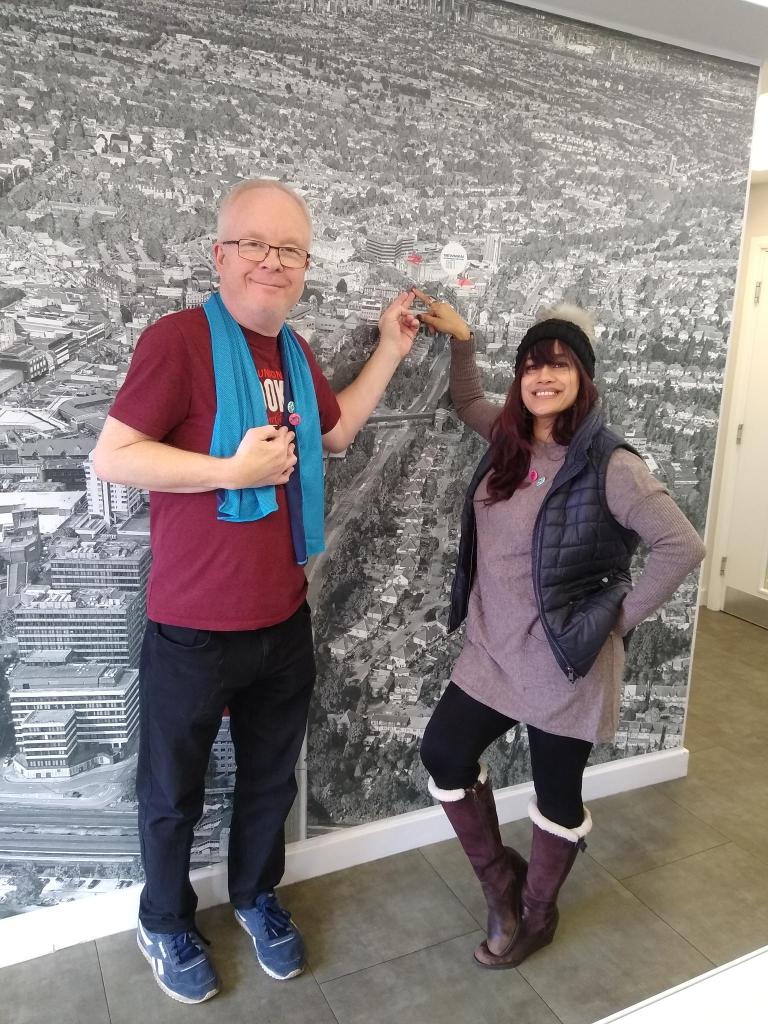 Remember, what Jameela said early on? About starting I Weigh, with PMS, in the back of a tour van? I Weigh and its messages can’t grow in isolation. They need support and supporters. That’s why I am talking about it via every channel I can (such as this community podcast episode) and to people I meet, now, day in, day out. It is also why Clarity Coach Zeenat Noorani and I have the I Weigh badges and towel on in the image above, standing in front of a map of Bromley, where we live, and where we started our own campaign, Let’s Talk Better. We can help I Weigh ‘on the ground’ by spreading the word here and beyond, and we will. That starts in earnest with this blog post and at our upcoming first anniversary event, ‘Celebrating Positivity’, on 22nd February. That was why I asked about the T shirts. Plus, I quite like the idea of strolling about with a T-Shirt emblazoned with the word ‘NO’.