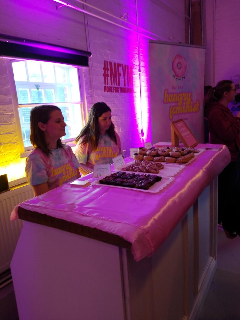 Joy of joys, this was a movement event without shame, and so the range of carelessly calorific bagels, and The Female Glaze products was a joy to behold, and the slabs of red velvet cake and brownies seemed especially popular!