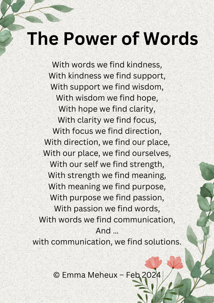 A beautiful and inspiring poem written by Emma, especially for the Let’s Talk Better campaign which she read aloud at the First Anniversary event ‘ Celebrating Positivity’ on the 22nd of February 2024.